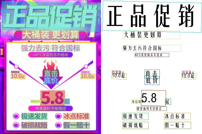 只有文本检测和文本识别的组合可以正常使用的前提是:确保传入图像中文字都是正的。